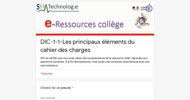 Afin de vérifier que vous avez retenu les connaissances de la ressource vidéo, répondez aux questions suivantes. A la fin des questions, vous aurez une correction automatique avec une note indicative.